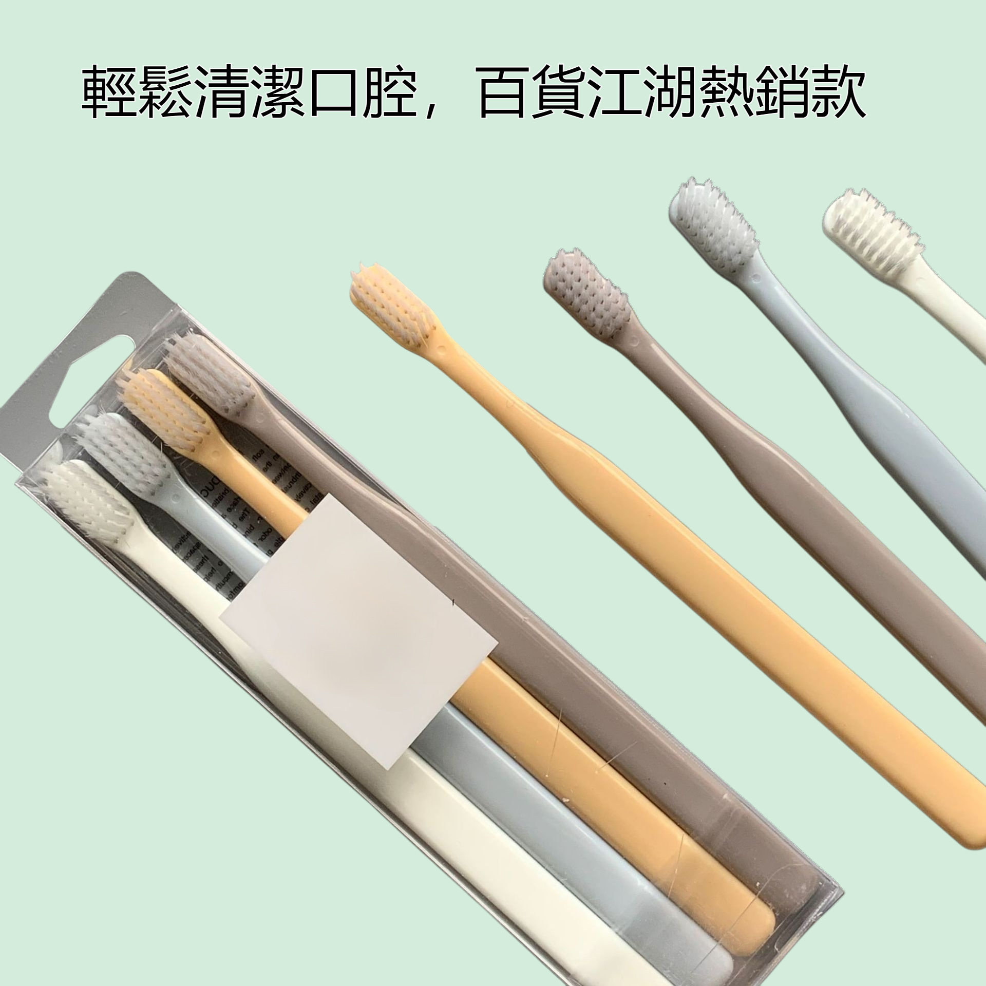 馬卡龍小頭無印牙刷,4支裝設計,日式簡約風格,竹炭軟毛呵護牙齦,適合成人日常使用,輕鬆清潔口腔,百貨江湖熱銷款。