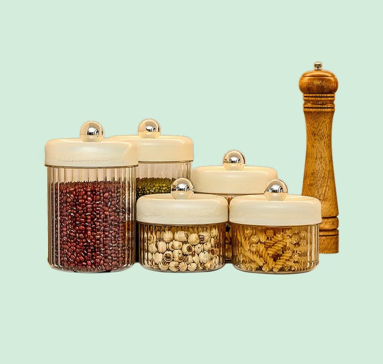圓形雜糧罐,防潮密封設計,透明罐身便於辨識內容物,適合五穀雜糧、茶葉等乾貨收納,食品級材質安全耐用。